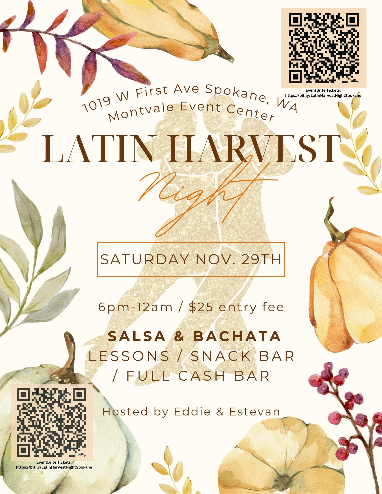 Thanks for joining us at the vibrant New Year's Eve celebration "Havana Style" at the Montvale Ballroom (3rd floor, historically known as Ella’s Supper Club) in downtown Spokane on December 31, 2024! This Cuban-themed event united lovers of music, dance, and Latin culture through a nostalgic, energetic, sexy, and vibrant cultural experience.New this year: We were thrilled to announce that an Afro-Cuban dance teacher, straight from Cuba, joined the celebration! We kicked off the night with a special Cuban Salsa lesson early in the evening, then later, enjoyed some fun and energetic salsa suelta to keep the party alive!Everyone felt the tropical Latin rhythms as we danced the night away! We enjoyed live music (Salsa, Cumbia, and Cha Cha) performed by Spokane's Son Dulce Live Salsa band, and DJ Eddie curating a specially crafted mix of classic and modern hits from Cuba, Puerto Rico, the Dominican Republic, NYC, and beyond.This year, we’re brought the spirit of Midnight in Havana to Spokane for an unforgettable cultural experience.Thanks for being part of this night by celebrating New Year's Eve in Spokane in true Havana style!